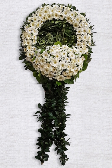 beyaz çiçeklerden hazırlanan çember modeli cenaze çelengi