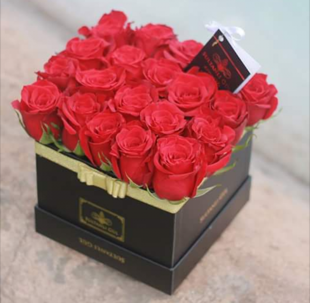kare kutu içerisinde 20(minumum 20 dir fazlada olabilir) gül çalışması(kutu şekli ve rengi mevcut stok durumuna göre değişir)