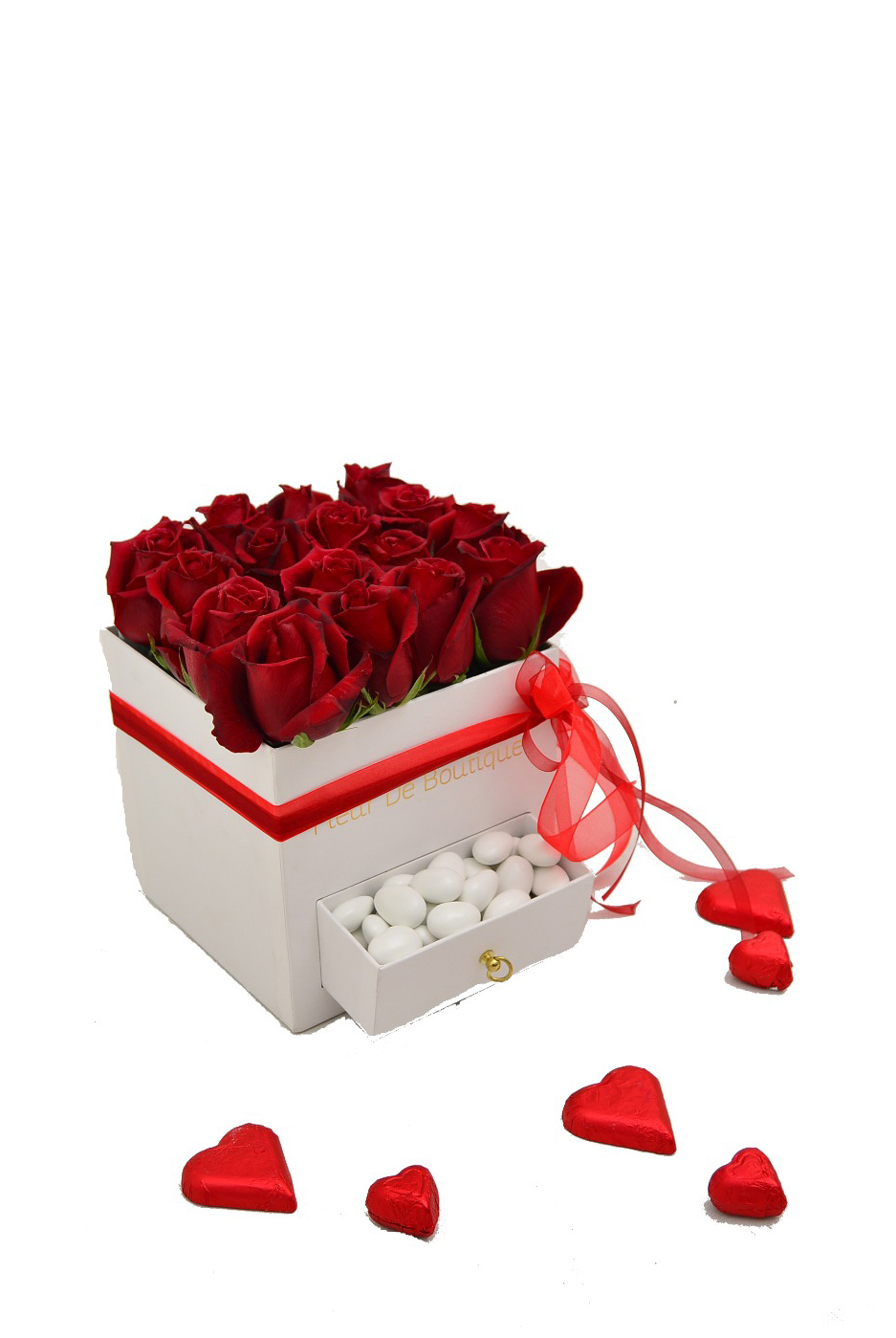 kare(yuvarlak) kutuda kırmızı güller 16 adet